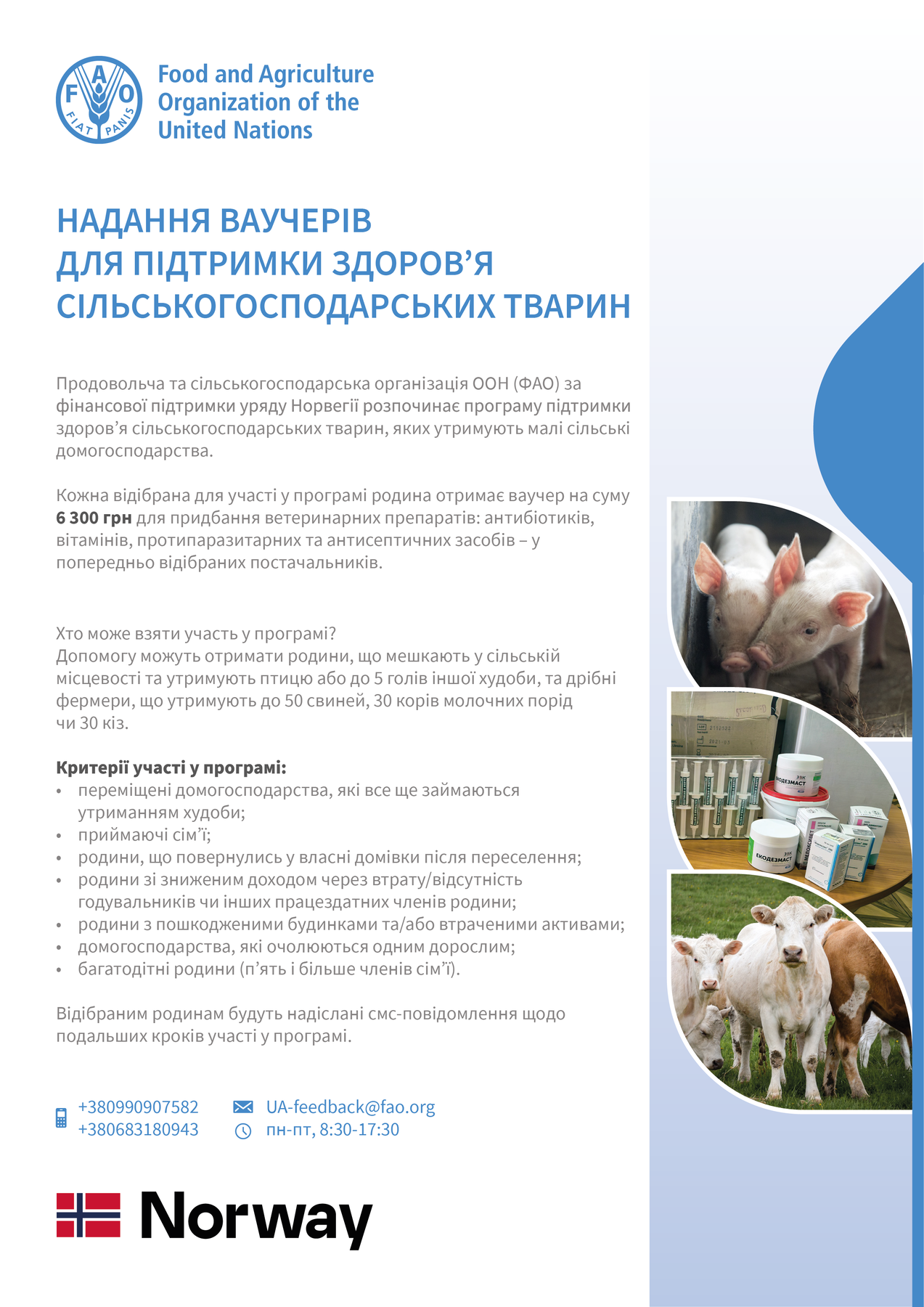 Гаряча лінія ФАО (пн-пт, 09:00-17:00): +380990907582, +380683180943, UA-feedback@fao.org.
